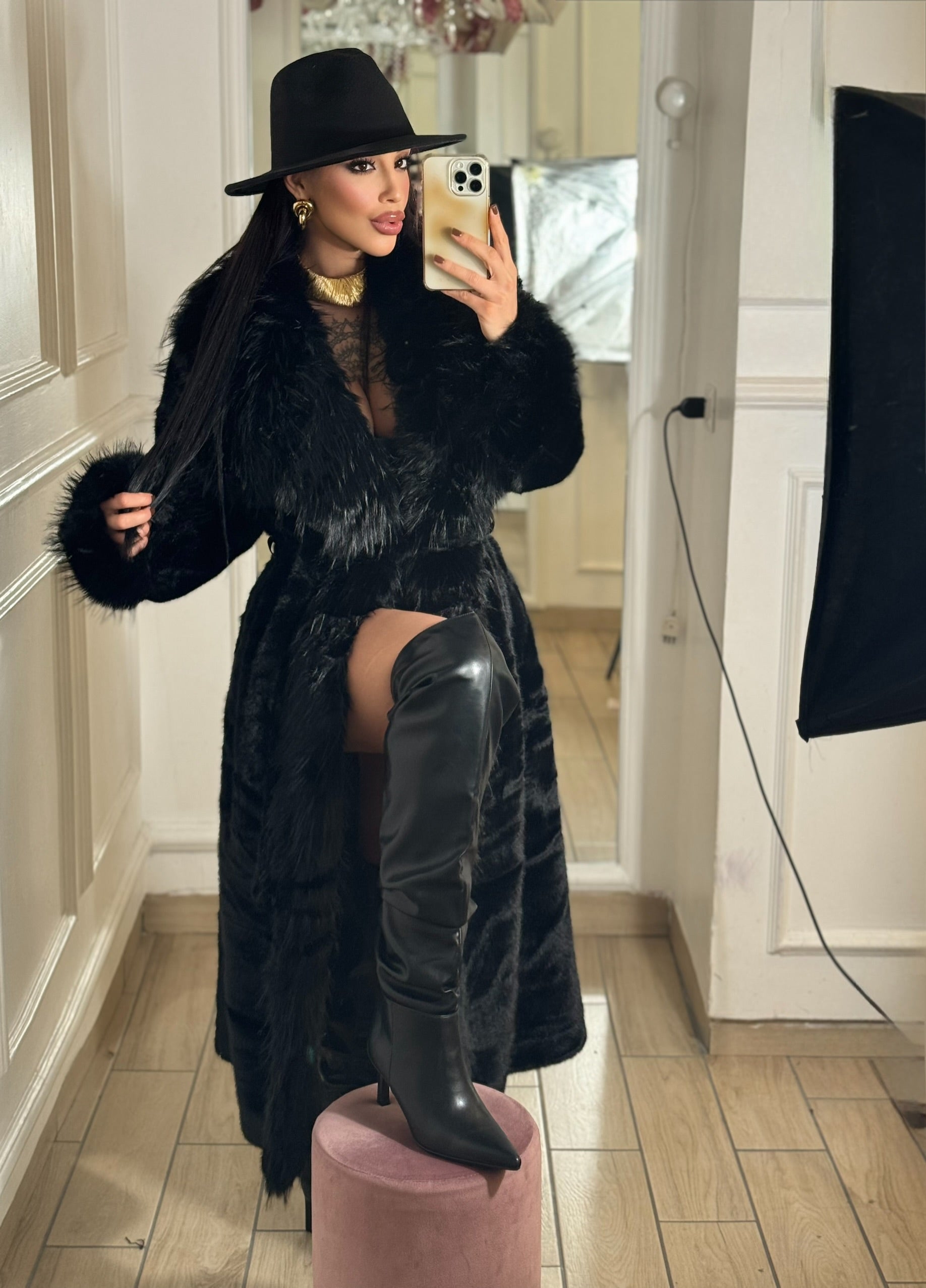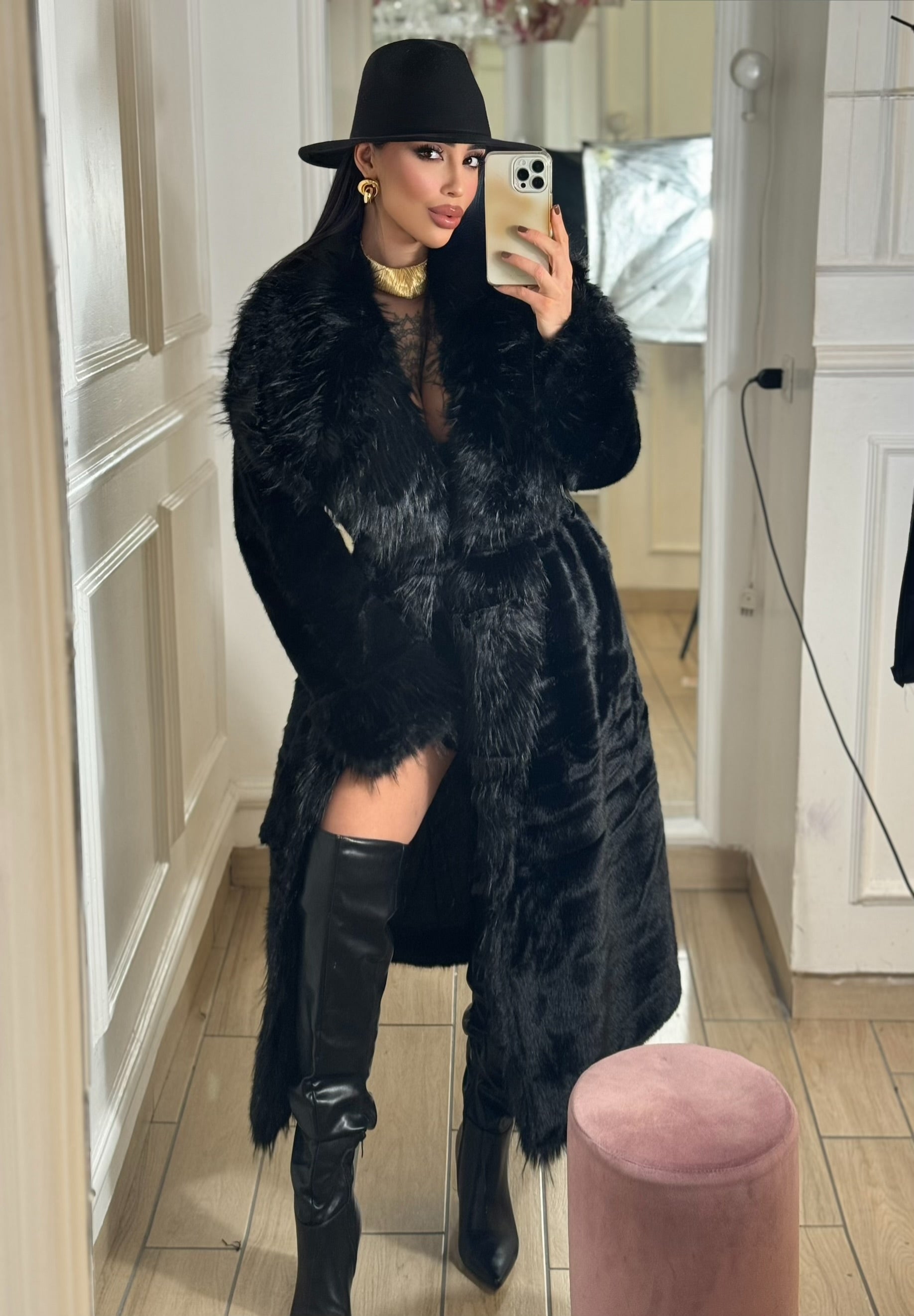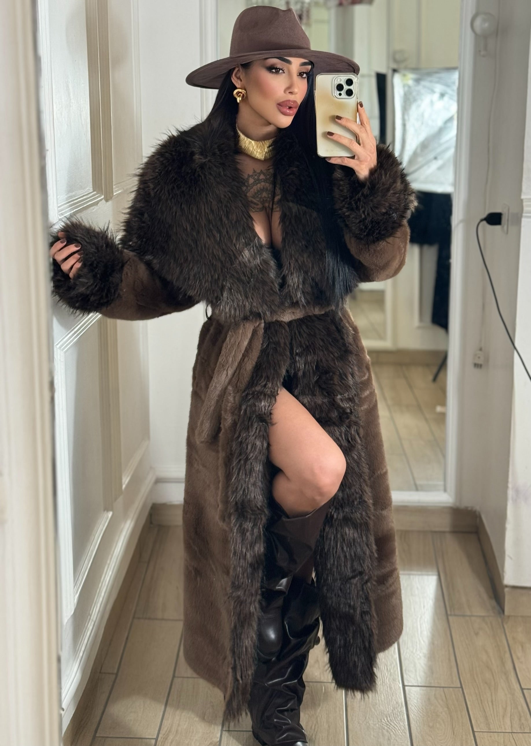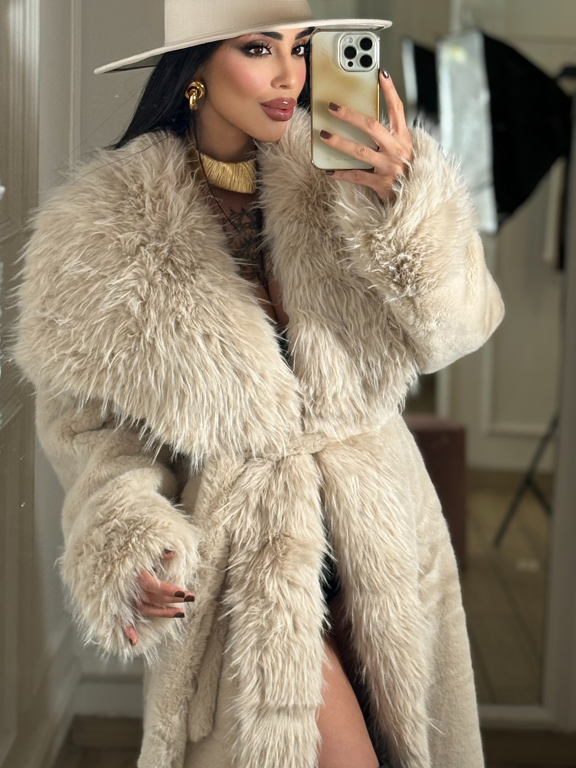 Pelliccia lunga, taglia unica, veste dalla XS alla ML