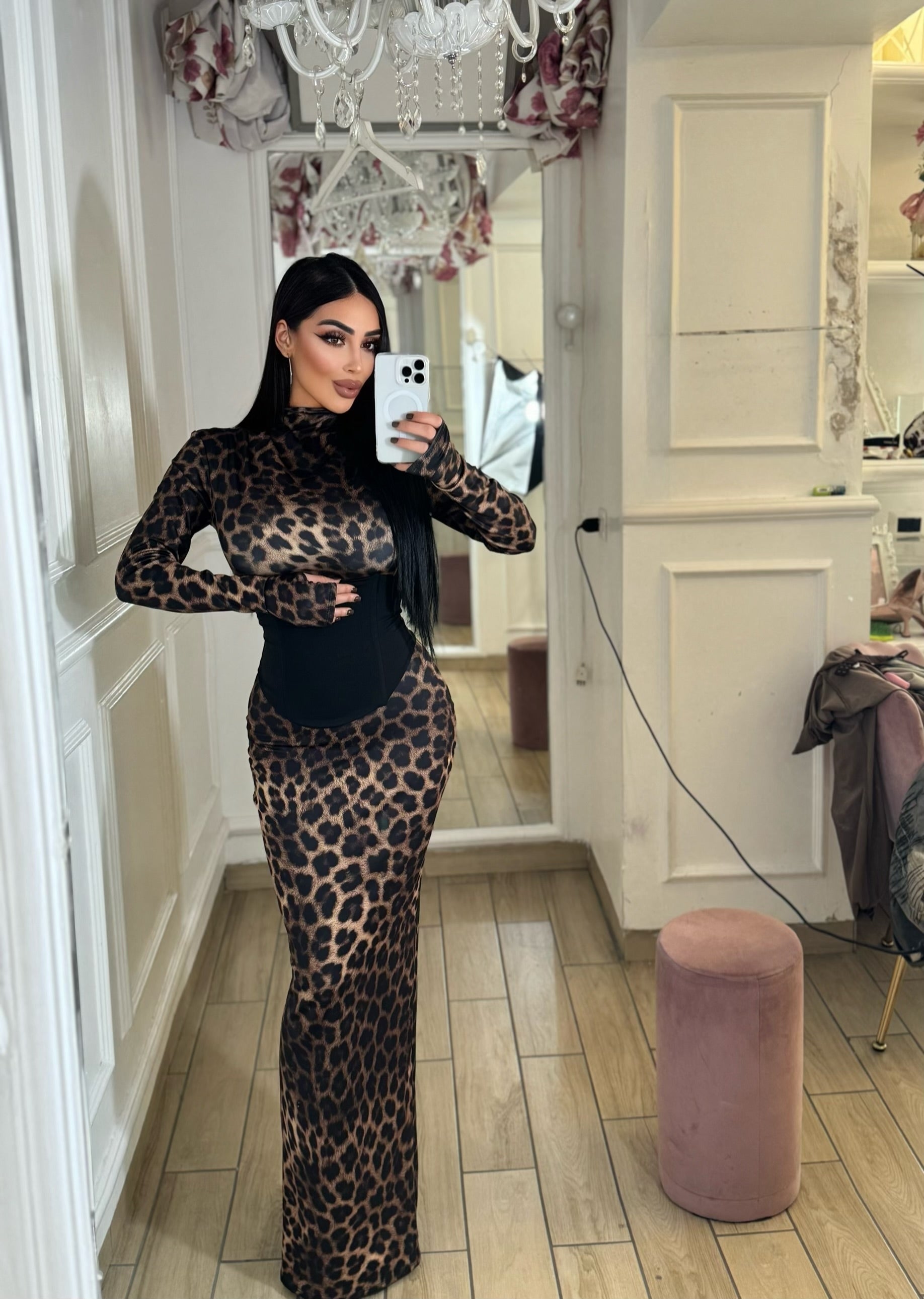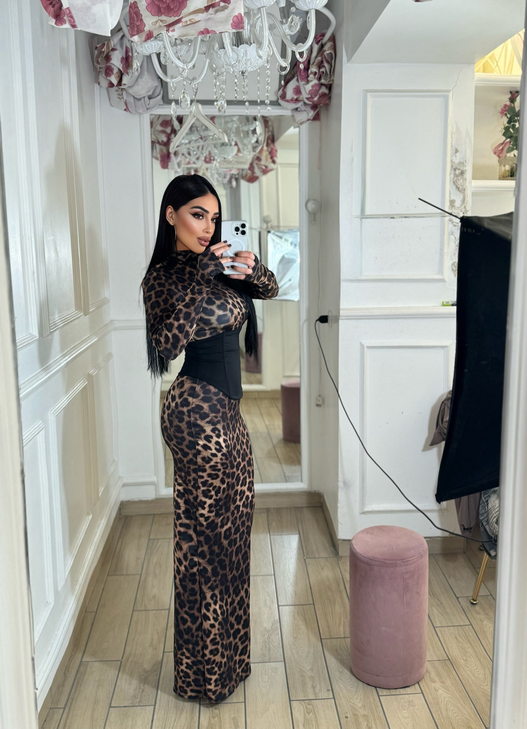 Abito con aggiunta di bustino leopardato, taglia unica, veste da XS alla ML
