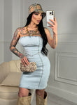 Abito in denim elasticizzato con chiusura in zip sul retro.