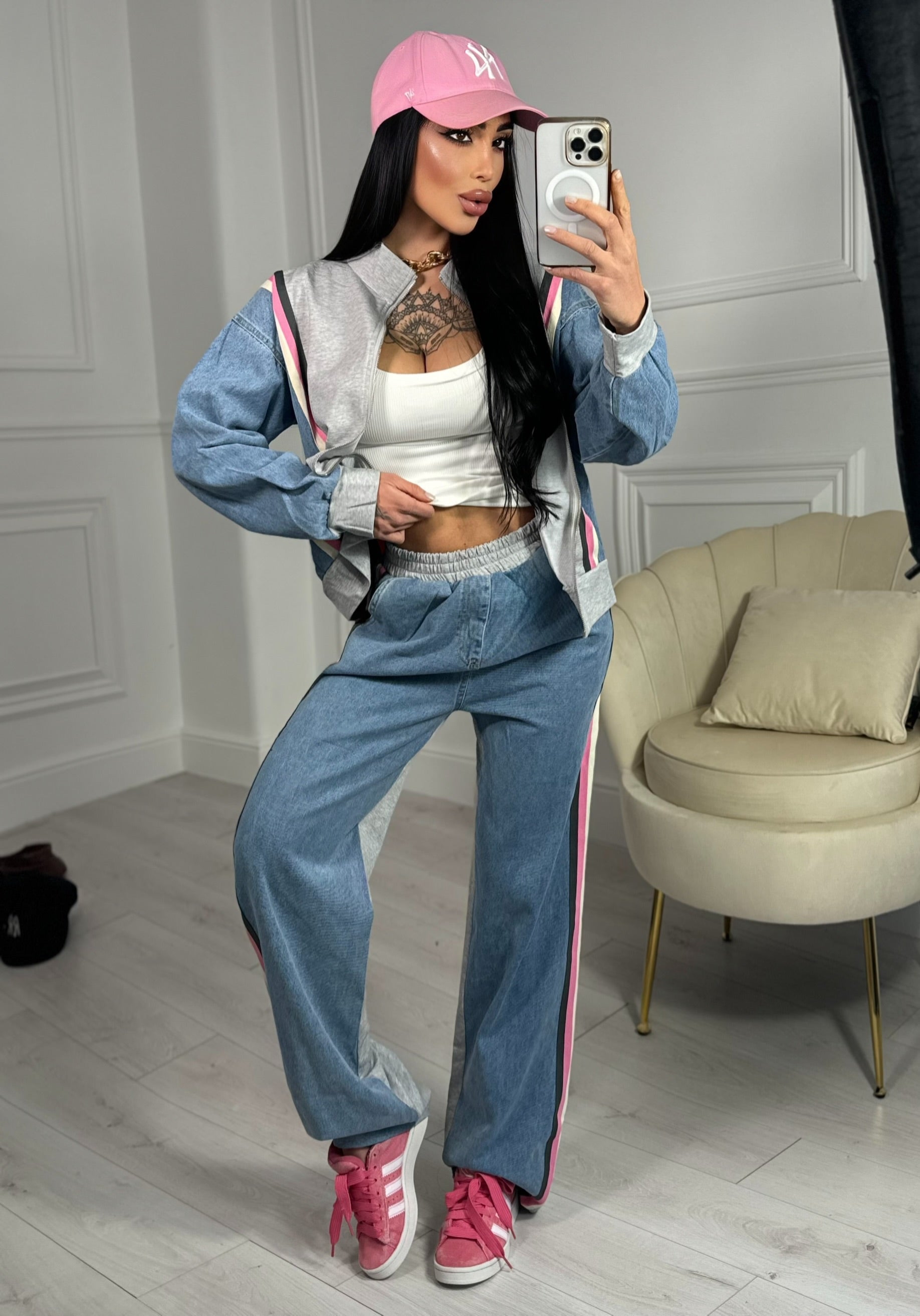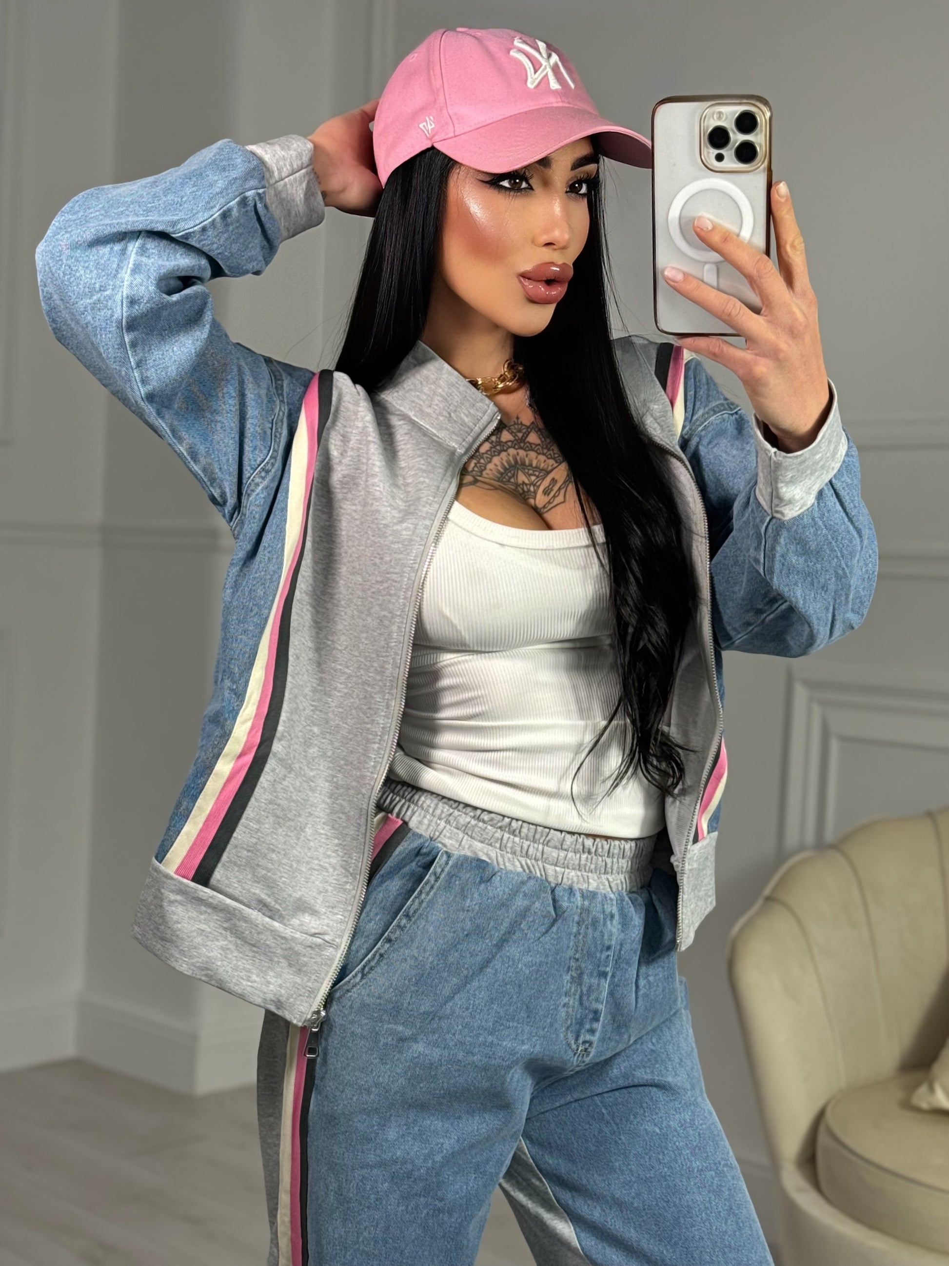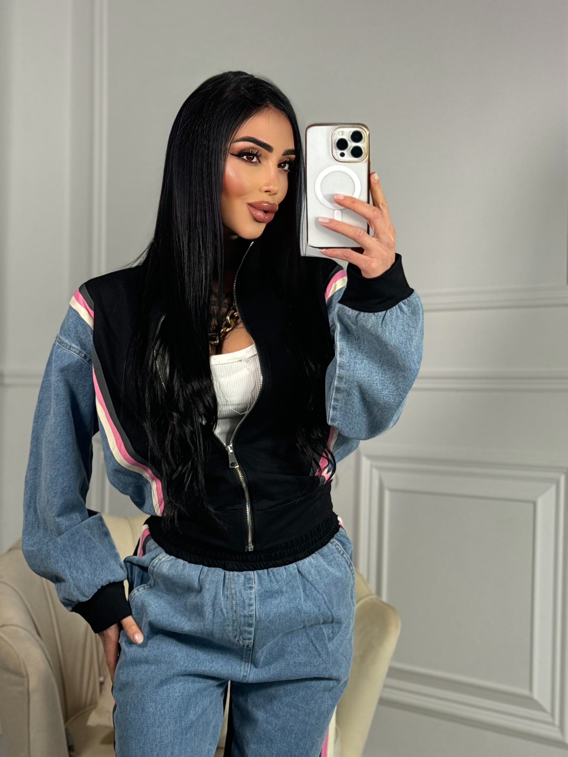 Coordinato composto da giacca con zip sul davanti pantalone con elastico in vita